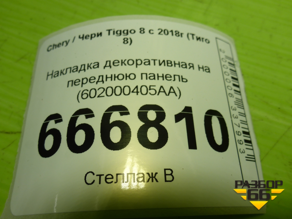 Накладка декоративная на переднюю панель (602000405AA) для Chery Tiggo 8 с 2018г (Тиго 8) в Екатеринбурге