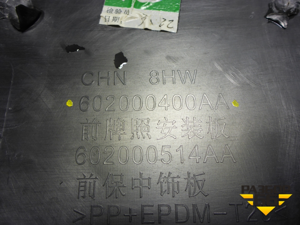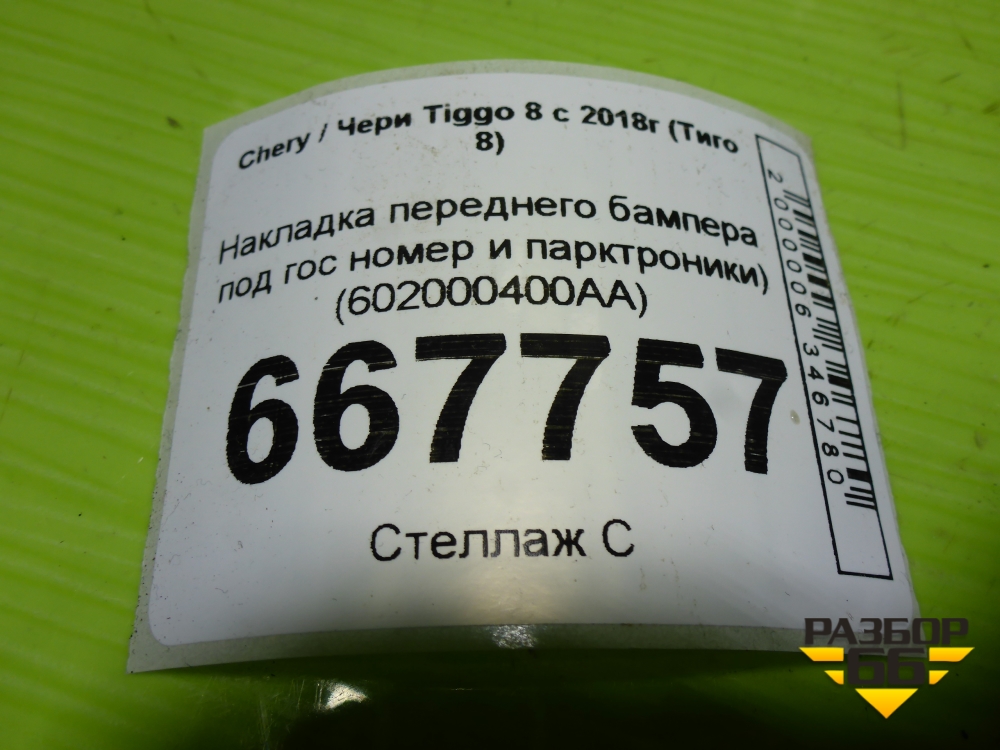 Накладка переднего бампера (под гос номер и парктроники) (602000400AA) для Chery Tiggo 8 с 2018г (Тиго 8) в Екатеринбурге