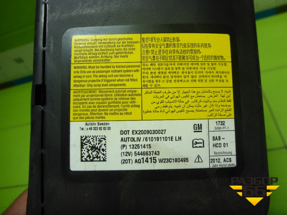 Подушка безопасности в сиденье (левая) (13251415) для Chevrolet Cruze c 2009-2015г (Круз) в Екатеринбурге