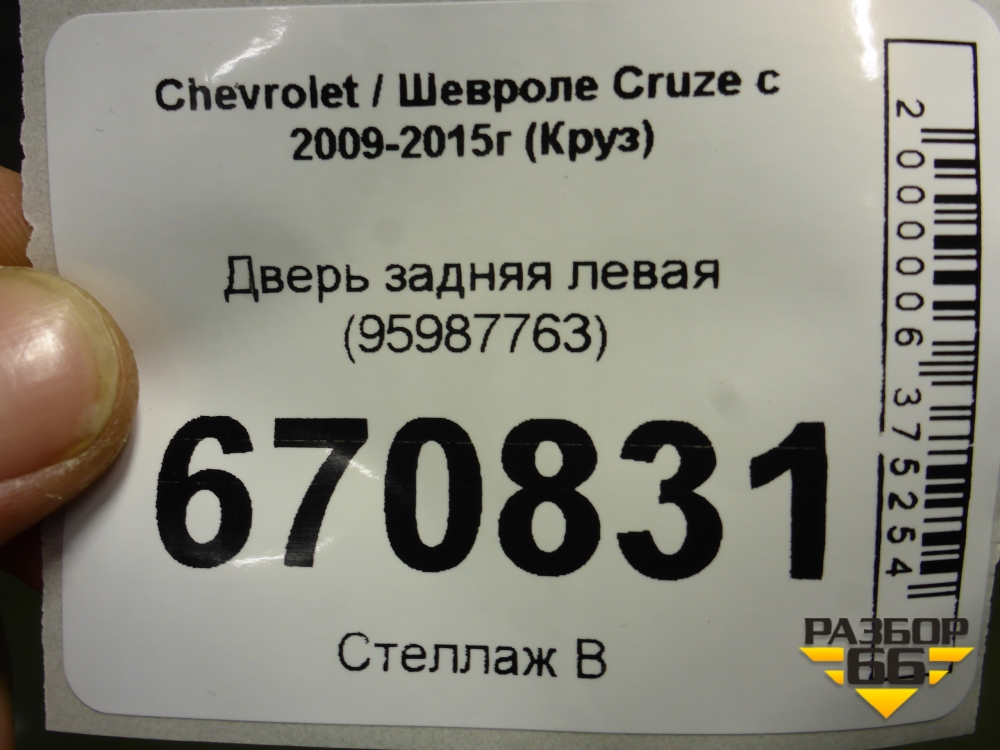 Дверь задняя левая (95987763) для Chevrolet Cruze c 2009-2015г (Круз) в Екатеринбурге