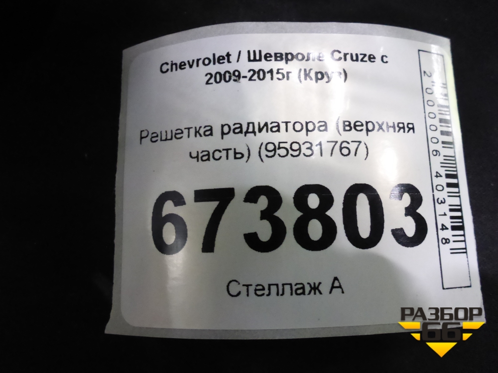 Решетка радиатора (верхняя часть) (95931767) для Chevrolet Cruze c 2009-2015г (Круз) в Екатеринбурге