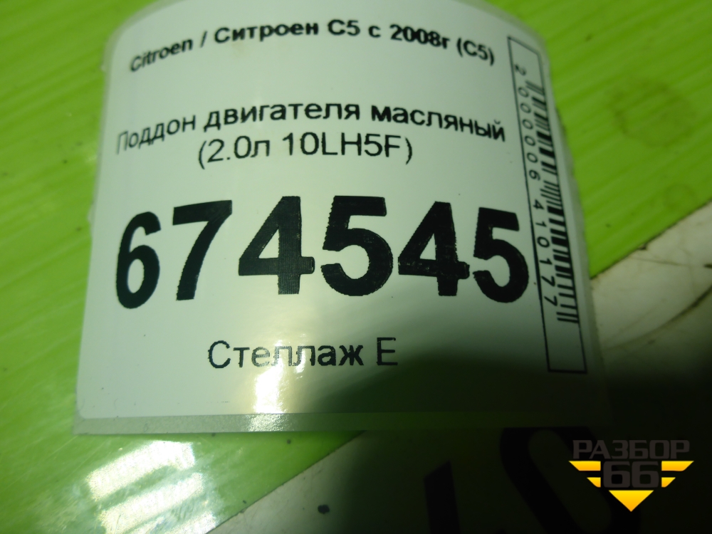 Поддон двигателя масляный (2.0л 10LH5F) (9651421380) для Citroen C5 с 2008г (С5) в Екатеринбурге