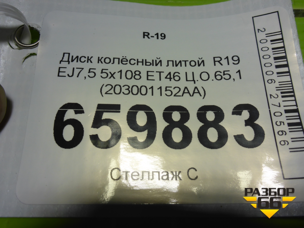 Диск колёсный литой R19 EJ7,5 5x108 ET46 Ц.О.65,1 (203001152AA) в Екатеринбурге