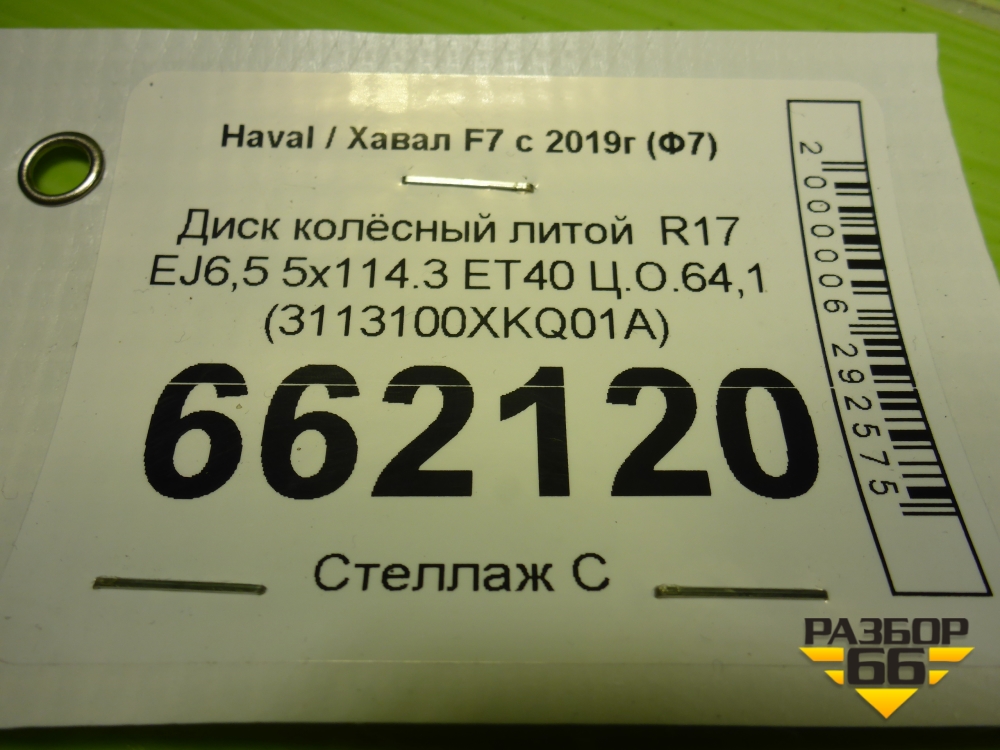 Диск колёсный литой R17 EJ6,5 5x114.3 ET40 Ц.О.64,1 (3113100XKQ01A) в Екатеринбурге