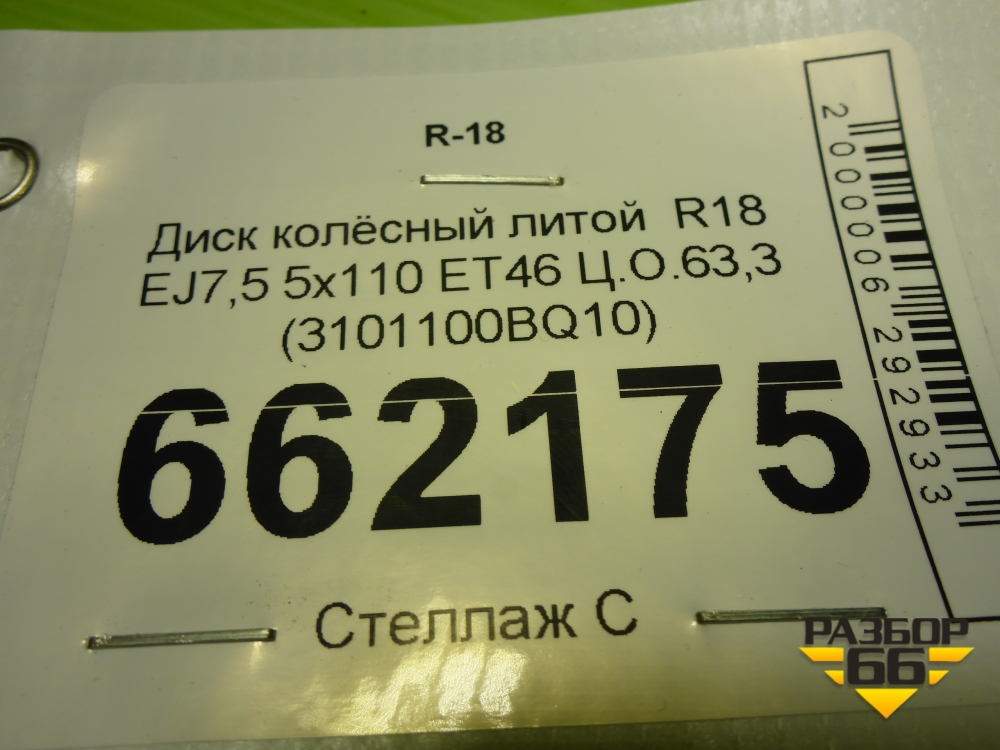 Диск колёсный литой R18 EJ7,5 5x110 ET46 Ц.О.63,3 (3101100BQ10) в Екатеринбурге