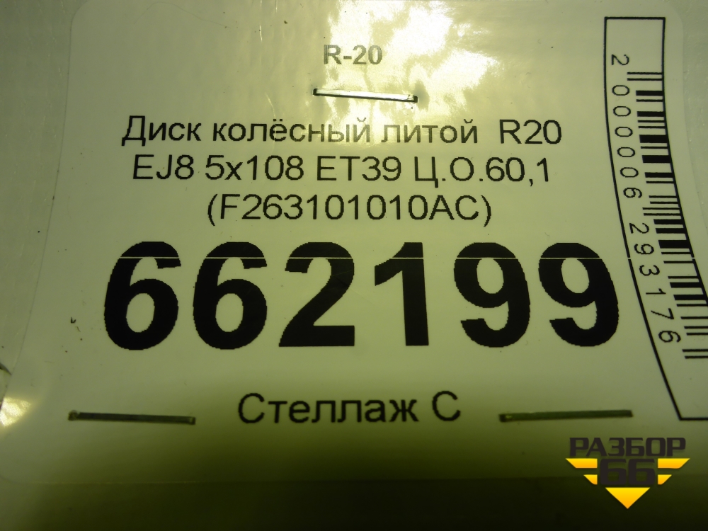 Диск колёсный литой R20 EJ8 5x108 ET39 Ц.О.60,1 (F263101010AC) в Екатеринбурге