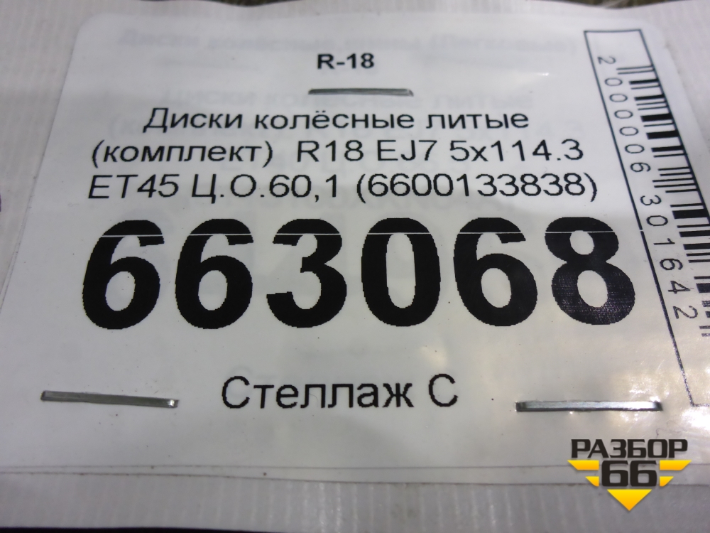 Диски колёсные литые (комплект) R18 EJ7 5x114.3 ET45 Ц.О.60,1 (6600133838) в Екатеринбурге