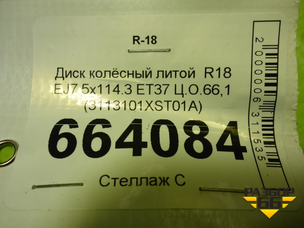 Диск колёсный литой R18 EJ7 5x114.3 ET37 Ц.О.66,1 (3113101XST01A) в Екатеринбурге