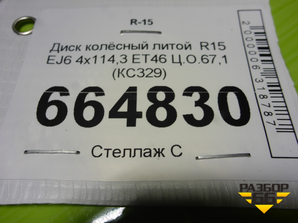 Диск колёсный литой R15 EJ6 4х114,3 ET46 Ц.О.67,1 (КС329) в Екатеринбурге