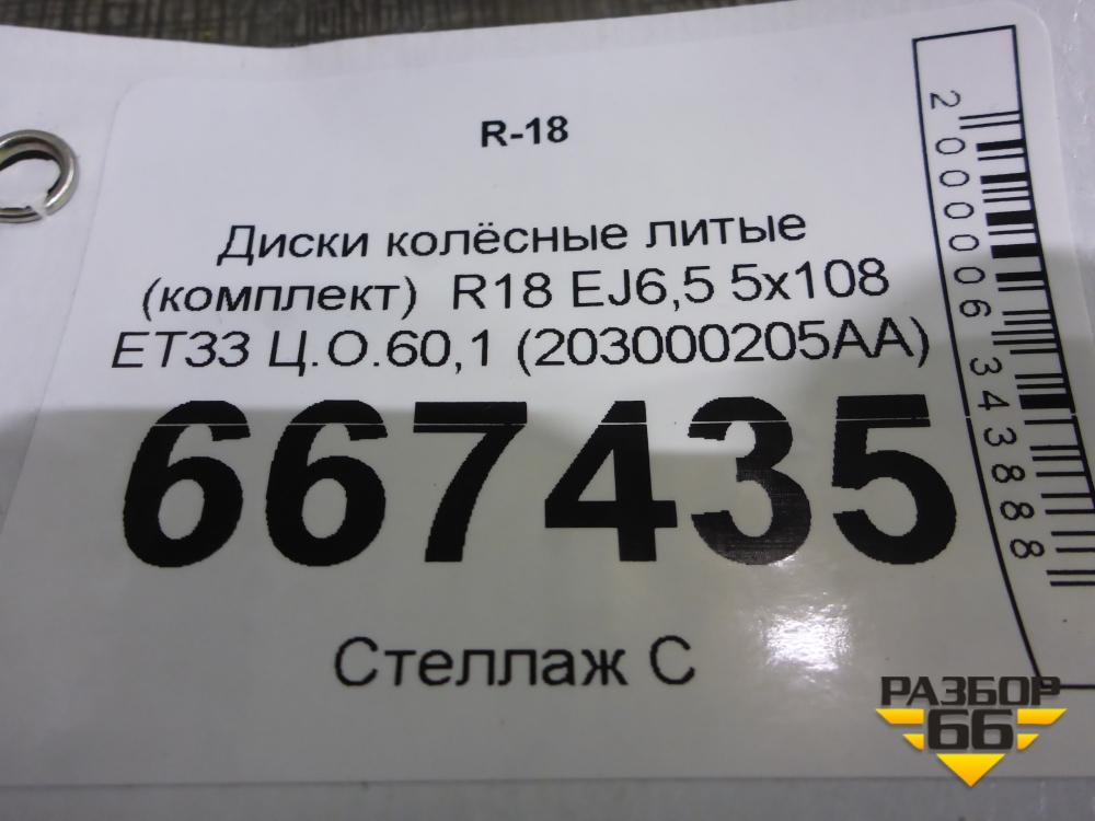 Диски колёсные литые (комплект) R18 EJ6,5 5x108 ET33 Ц.О.60,1 (203000205AA) в Екатеринбурге