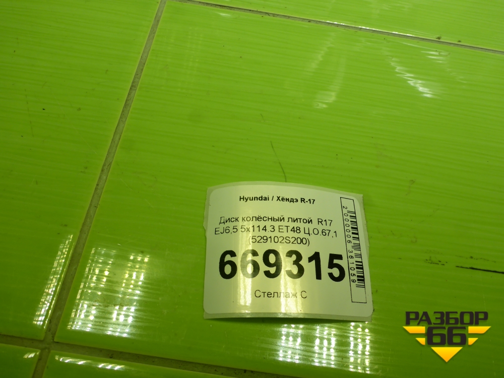 Диск колёсный литой R17 EJ6,5 5x114.3 ET48 Ц.О.67,1 (529102S200) в Екатеринбурге