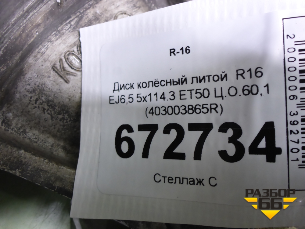 Диск колёсный литой R16 EJ6,5 5x114.3 ET50 Ц.О.60,1 (403003865R) в Екатеринбурге