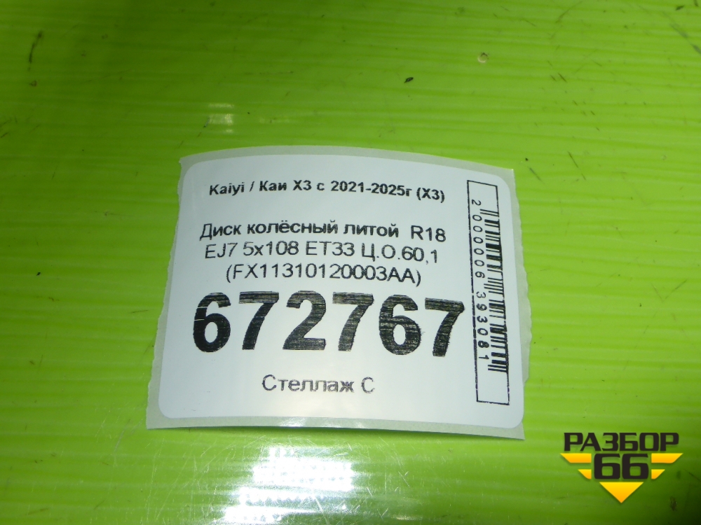 Диск колёсный литой R18 EJ7 5x108 ET33 Ц.О.60,1 (FX11310120003AA) в Екатеринбурге