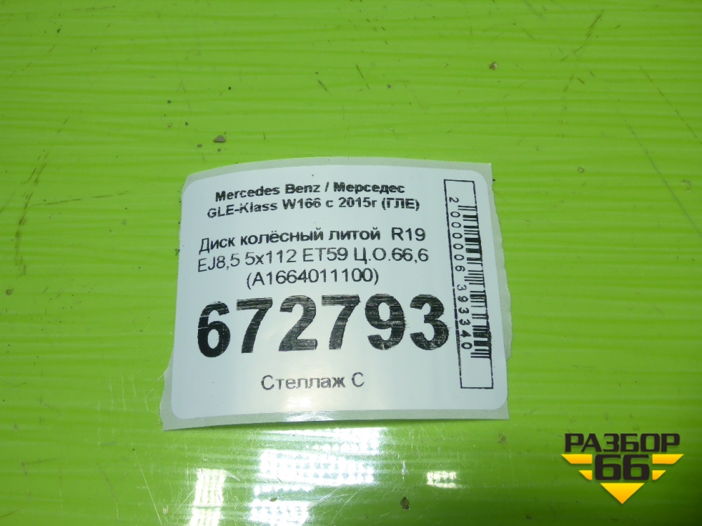 Диск колёсный литой R19 EJ8,5 5x112 ET59 Ц.О.66,6 (A1664011100) в Екатеринбурге