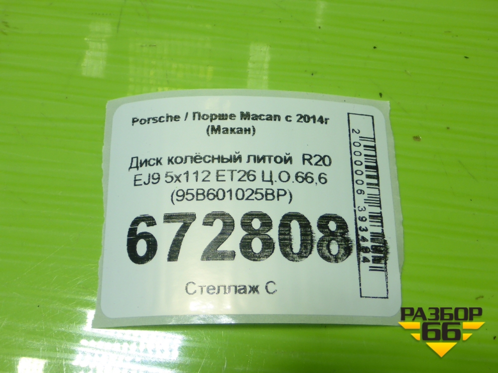 Диск колёсный литой R20 EJ9 5x112 ET26 Ц.О.66,6 (95B601025BP) в Екатеринбурге