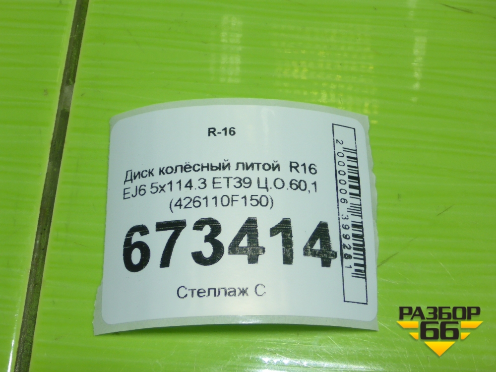 Диск колёсный литой R16 EJ6 5x114.3 ET39 Ц.О.60,1 (426110F150) в Екатеринбурге