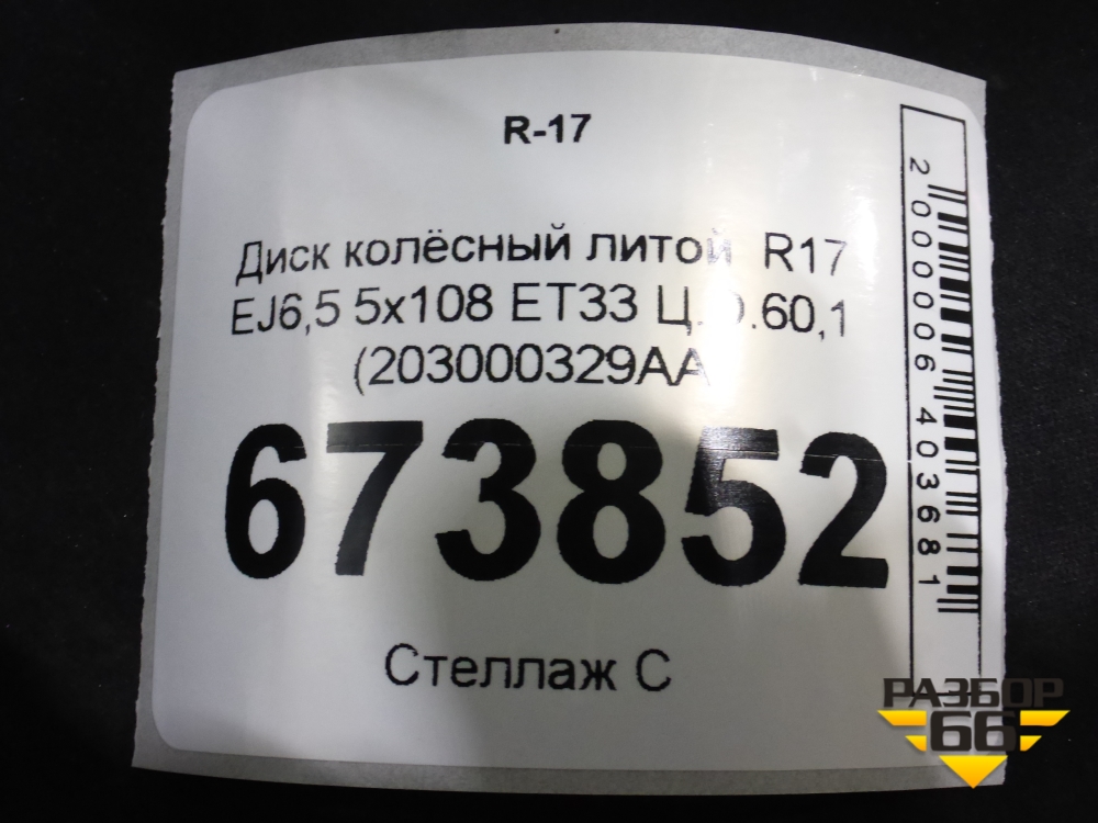 Диск колёсный литой R17 EJ6,5 5x108 ET33 Ц.О.60,1 (203000329AA) в Екатеринбурге