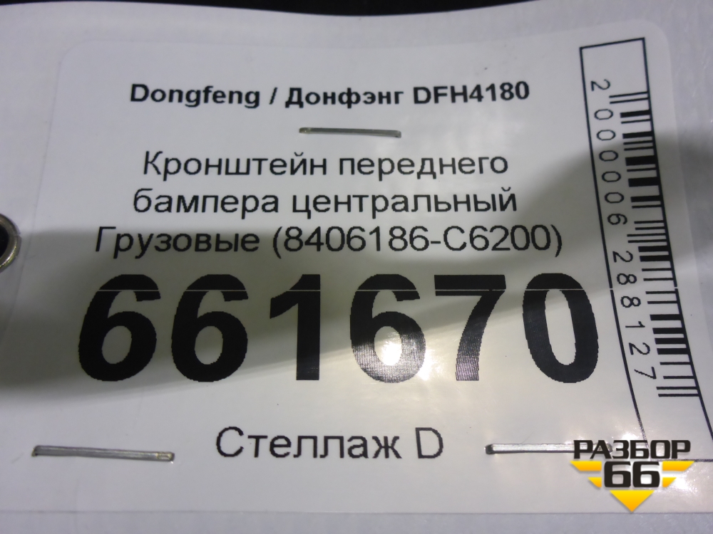Кронштейн переднего бампера центральный (8406186-C6200) (8406186C6200) для Dongfeng DFH4180 в Екатеринбурге