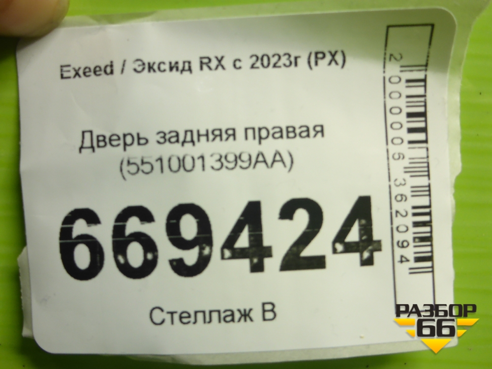 Дверь задняя правая (551001399AA) для Exeed RX с 2023г (РХ) в Екатеринбурге