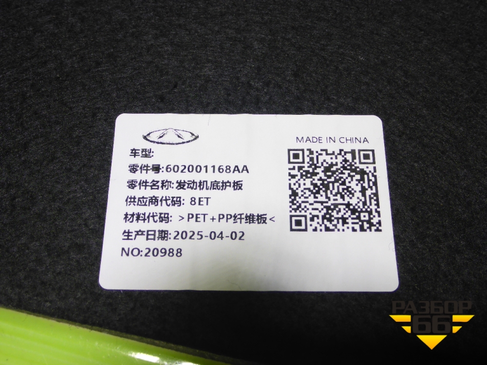 Пыльник двигателя центральный (новый) (602001168AA) для Exeed TXL с 2020-2024г (ТХЛ) в Екатеринбурге