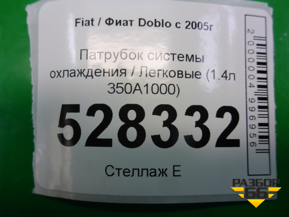 Патрубок системы охлаждения (1.4л 350A1000) (00517558200E) для Fiat Doblo с 2005-2015г (Добло) в Екатеринбурге