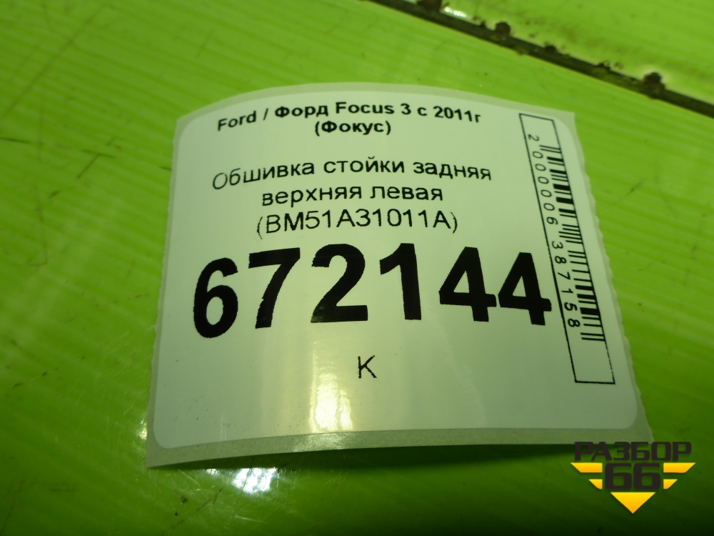 Обшивка стойки задняя верхняя левая (хетчбэк) (BM51A31011ADW) для Ford Focus 3 с 2011г (Фокус) в Екатеринбурге
