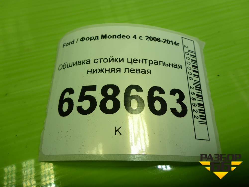 Обшивка стойки центральная нижняя левая (7S71A243W07AMW) для Ford Mondeo 4 с 2006-2014г (Мондео) в Екатеринбурге