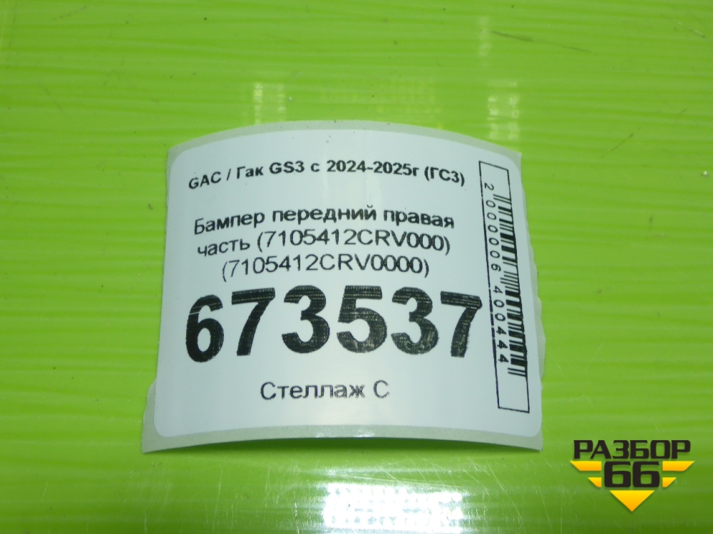Бампер передний правая часть (7105412CRV000) (7105412CRV0000) для GAC GS3 с 2024-2025г (ГС3) в Екатеринбурге