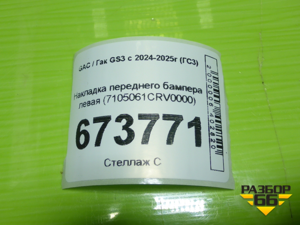 Накладка переднего бампера левая (7105061CRV0000) для GAC GS3 с 2024-2025г (ГС3) в Екатеринбурге