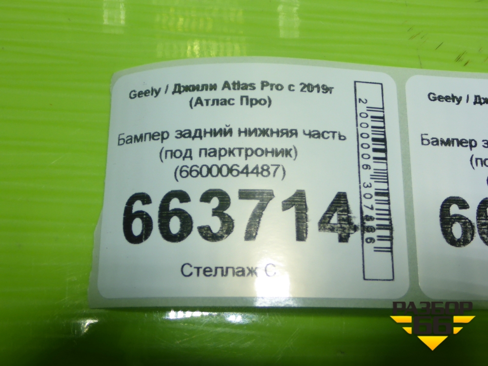 Бампер задний нижняя часть (под парктроник) (6600064487) для Geely Atlas Pro с 2019г (Атлас Про) в Екатеринбурге