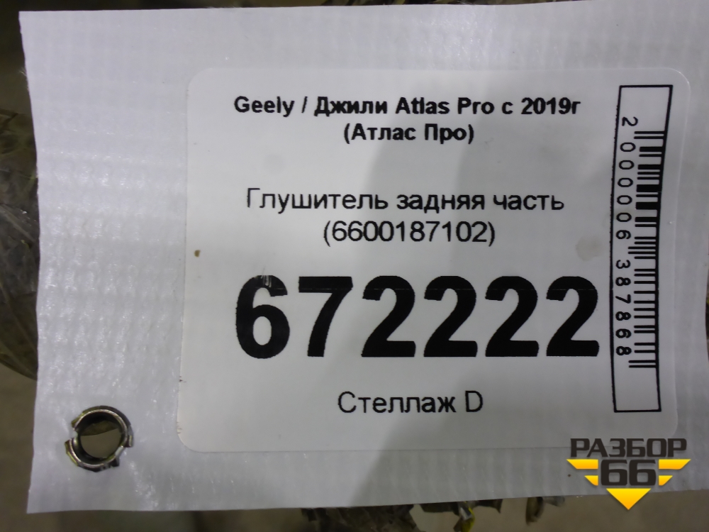 Глушитель задняя часть (6600187102) для Geely Atlas Pro с 2019г (Атлас Про) в Екатеринбурге