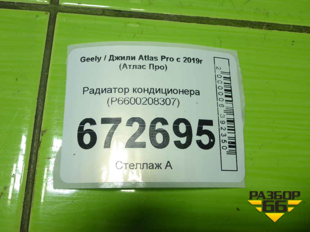 Радиатор кондиционера (P6600208307) для Geely Atlas Pro с 2019г (Атлас Про) в Екатеринбурге
