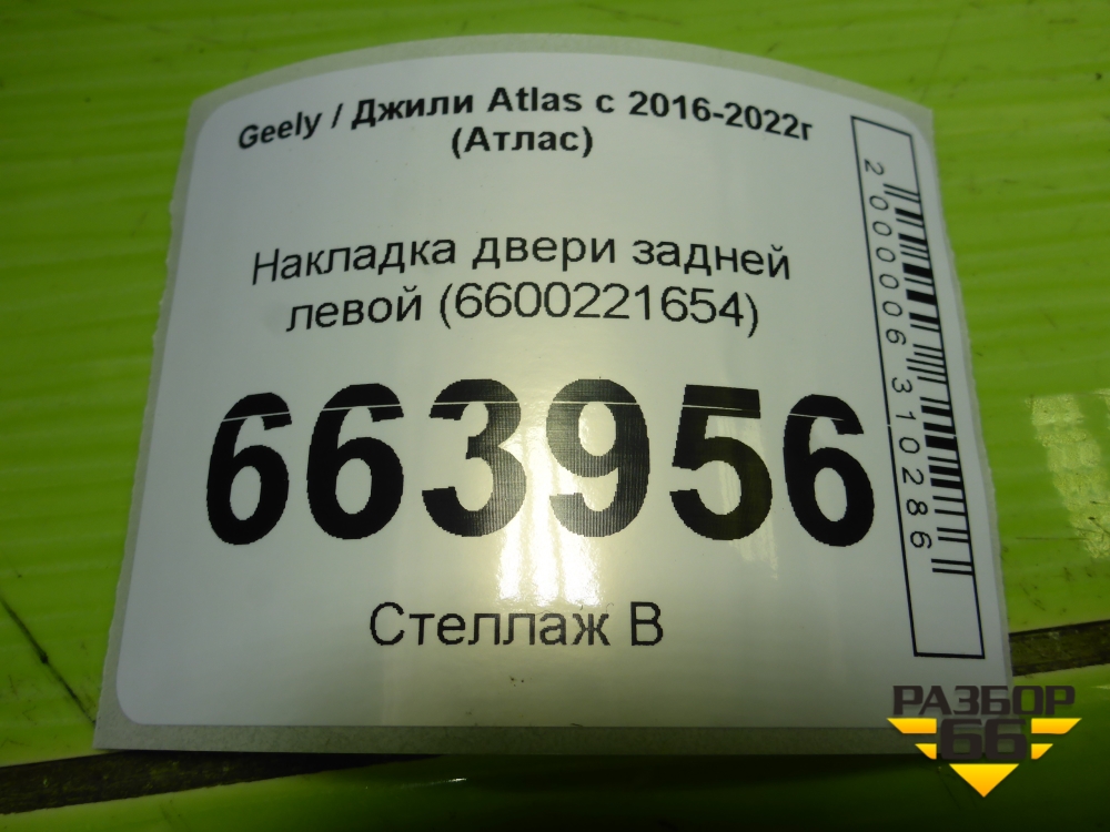 Накладка двери задней левой (6600221654) для Geely Atlas с 2016-2022г (Атлас) в Екатеринбурге