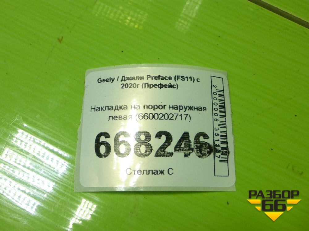 Накладка на порог наружная левая (6600202717) для Geely Preface (FS11) с 2020г (Префейс) в Екатеринбурге