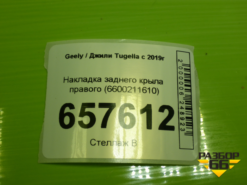 Накладка заднего крыла правого (6600211610) для Geely Tugella с 2019г (Тугелла) в Екатеринбурге