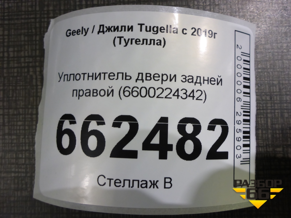 Уплотнитель двери задней правой (6600224342) для Geely Tugella с 2019г (Тугелла) в Екатеринбурге