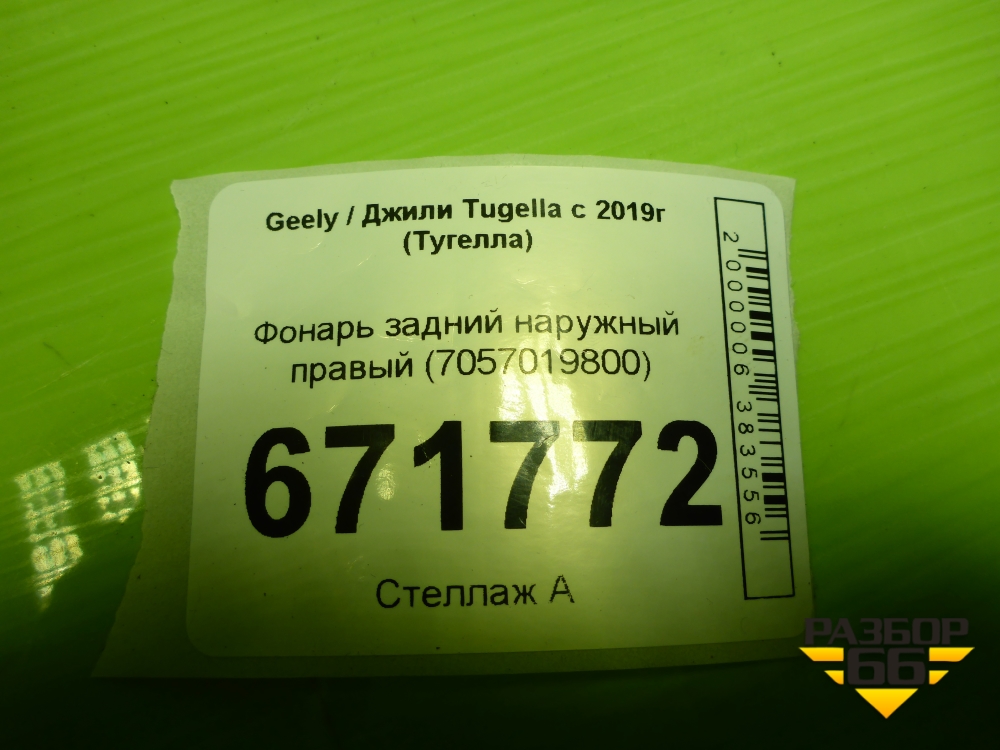 Фонарь задний наружный правый (7057019800) для Geely Tugella с 2019г (Тугелла) в Екатеринбурге