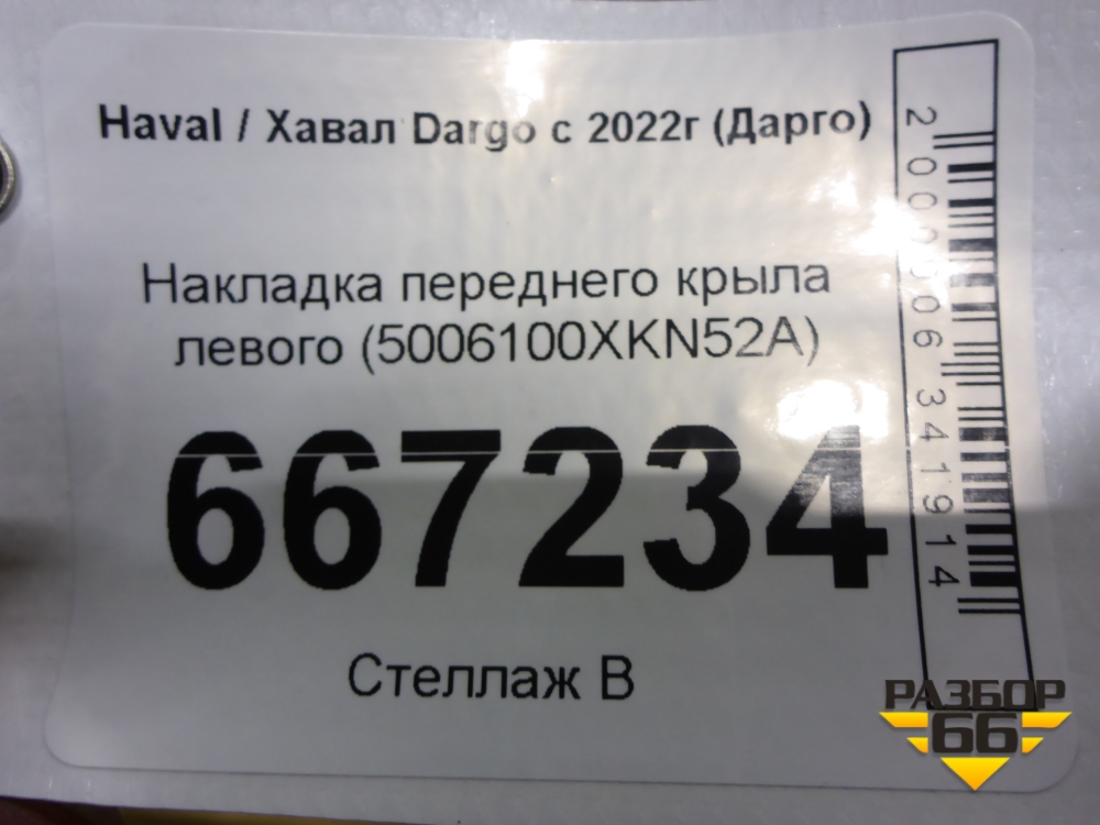 Накладка переднего крыла левого (5006100XKN52A) для Haval Dargo с 2022г (Дарго) в Екатеринбурге