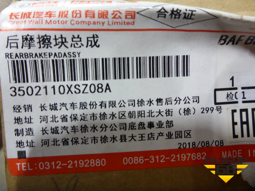 Колодки тормозные задние (3502110XSZ08A) для Haval H2 с 2014г (Аш2) в Екатеринбурге