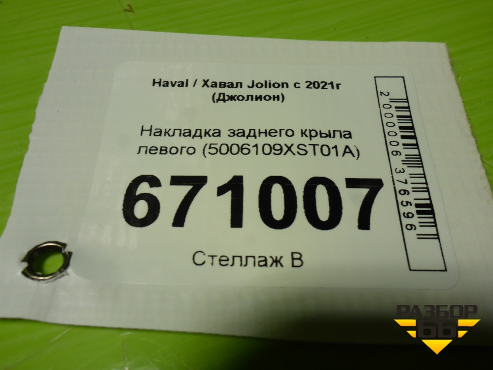 Накладка заднего крыла левого (5006109XST01A) для Haval Jolion с 2021г (Джолион) в Екатеринбурге