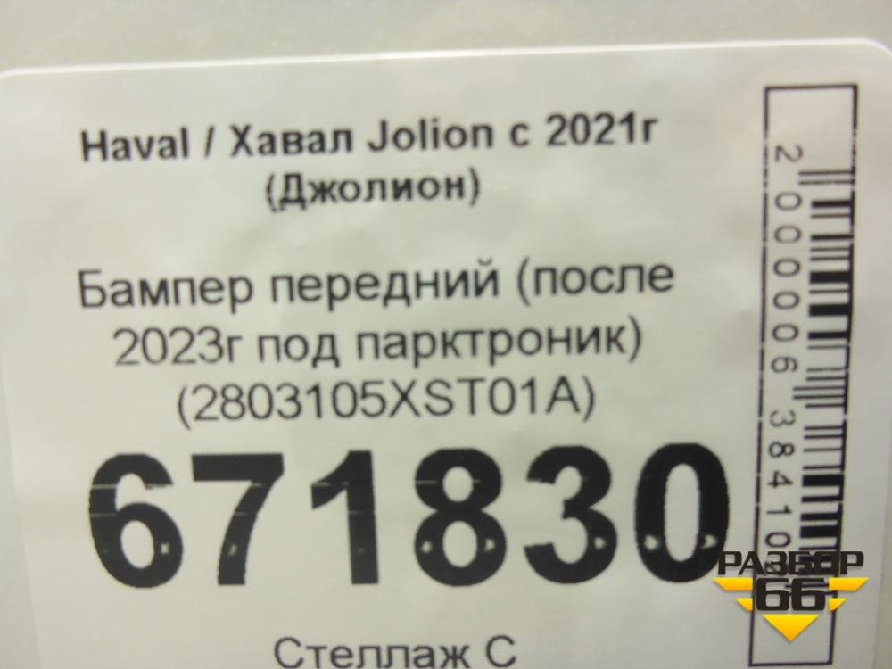 Бампер передний (после 2023г под парктроник) (2803105XST01A) для Haval Jolion с 2021г (Джолион) в Екатеринбурге