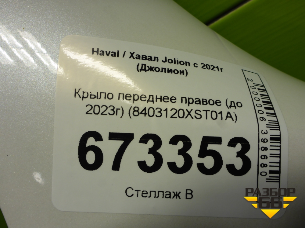 Крыло переднее правое (до 2023г) (8403120XST01A) для Haval Jolion с 2021г (Джолион) в Екатеринбурге
