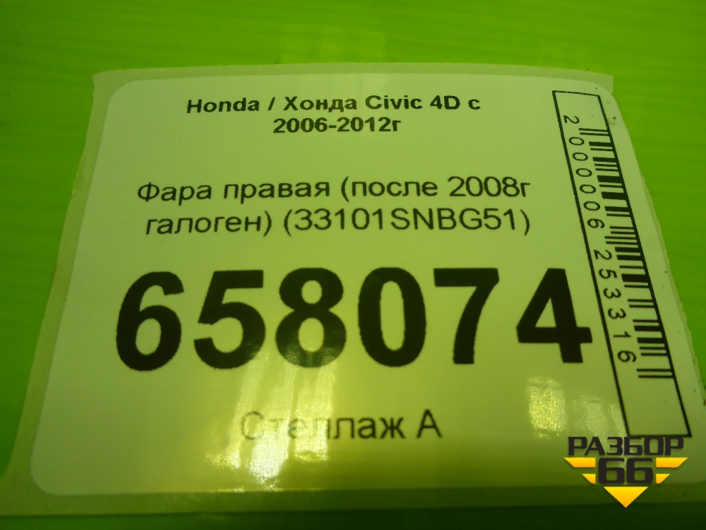 Фара правая (после 2008г галоген) (33101SNBG51) для Honda Civic 4D с 2006-2012г (Цивик) в Екатеринбурге