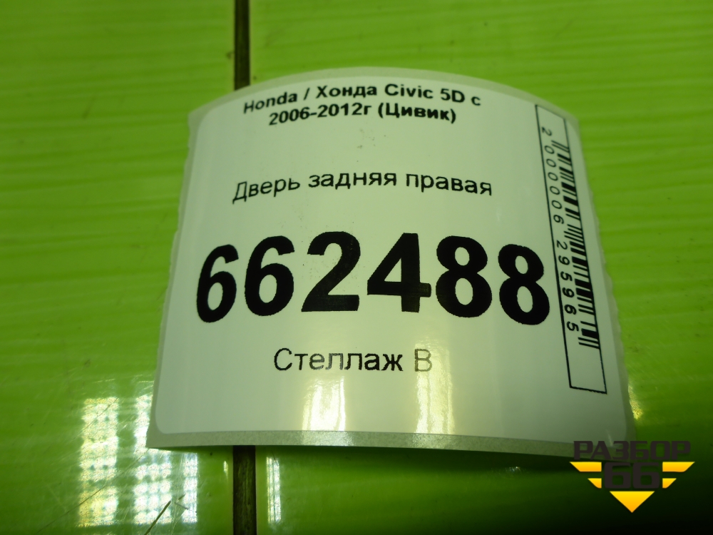 Дверь задняя правая (67510SMGE00ZZ) для Honda Civic 5D с 2005-2011г (Цивик) в Екатеринбурге