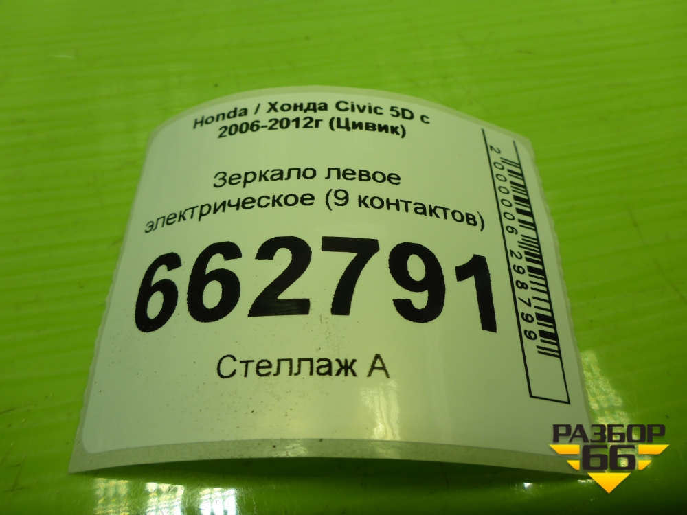 Зеркало левое электрическое (9 контактов) (76251SMGG31) для Honda Civic 5D с 2005-2011г (Цивик) в Екатеринбурге