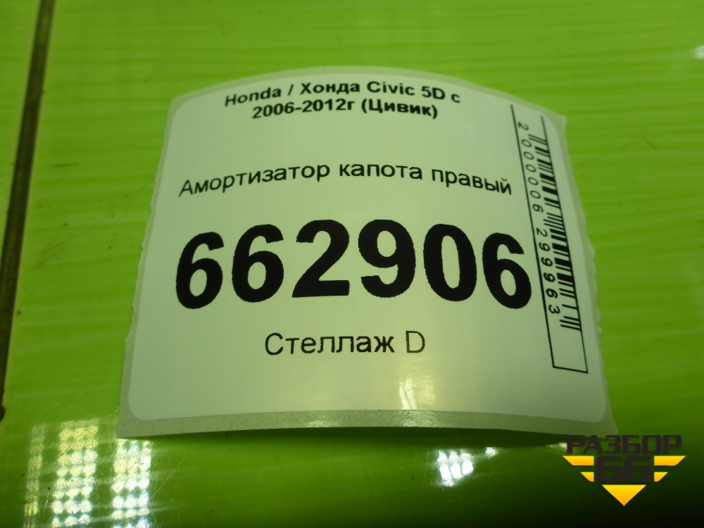 Амортизатор капота правый (74820SMGE021) для Honda Civic 5D с 2005-2011г (Цивик) в Екатеринбурге