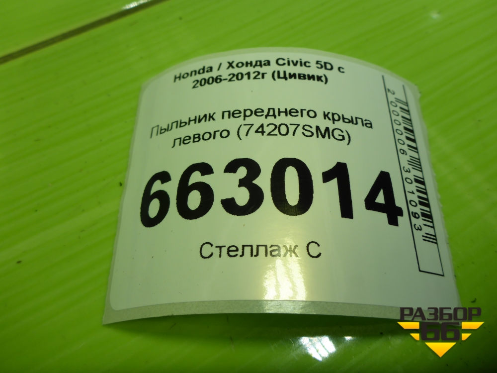 Пыльник переднего крыла левого (верхний) (74207SMG) для Honda Civic 5D с 2005-2011г (Цивик) в Екатеринбурге