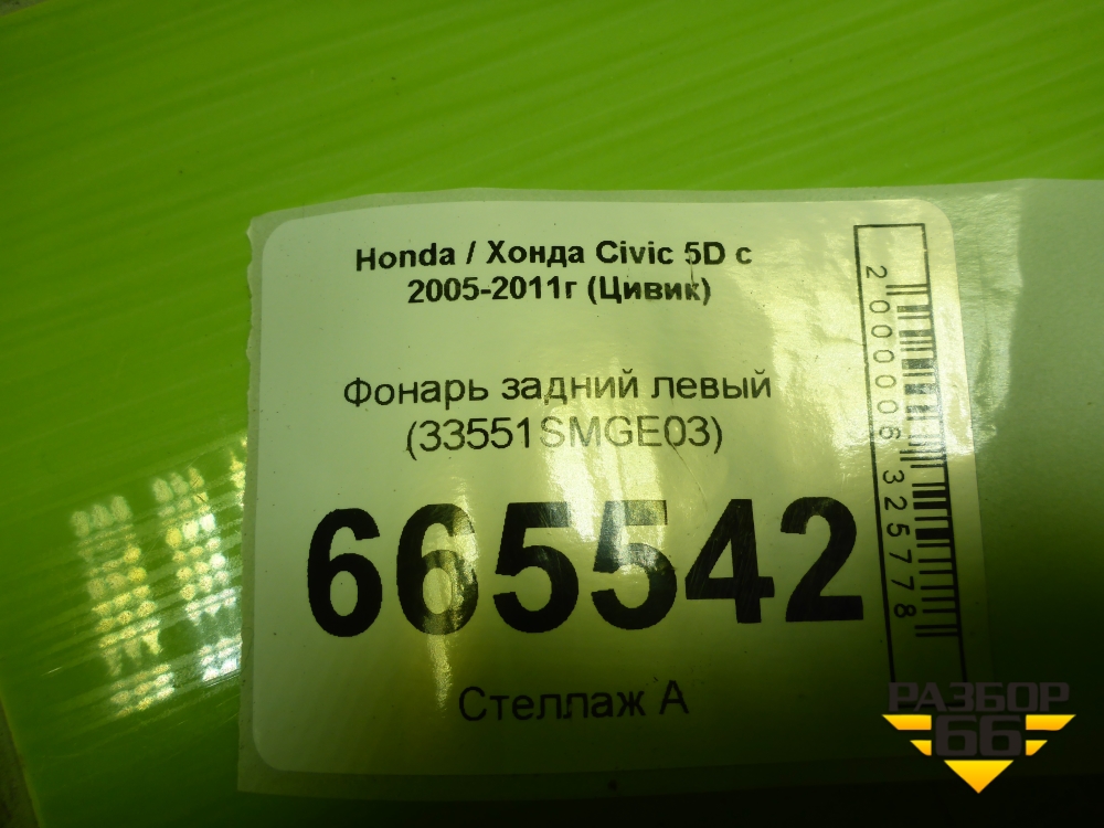 Фонарь задний левый (33551SMGE03) для Honda Civic 5D с 2005-2011г (Цивик) в Екатеринбурге