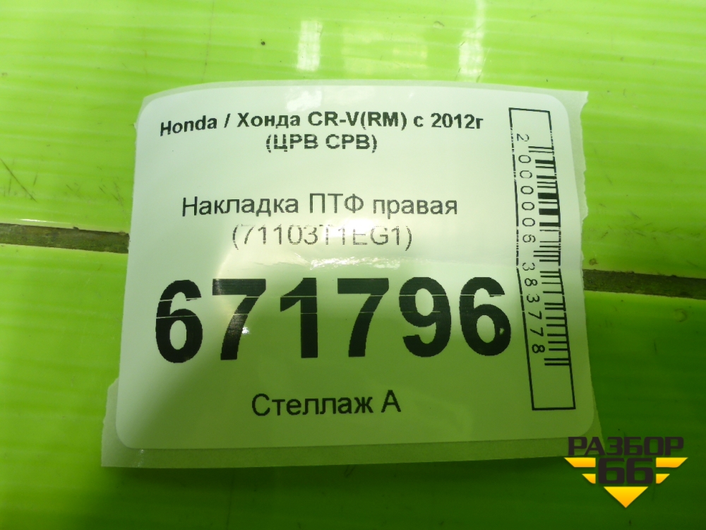 Накладка ПТФ правая (71103T1EG1) для Honda CR-V(RM) с 2012г (ЦРВ СРВ) в Екатеринбурге