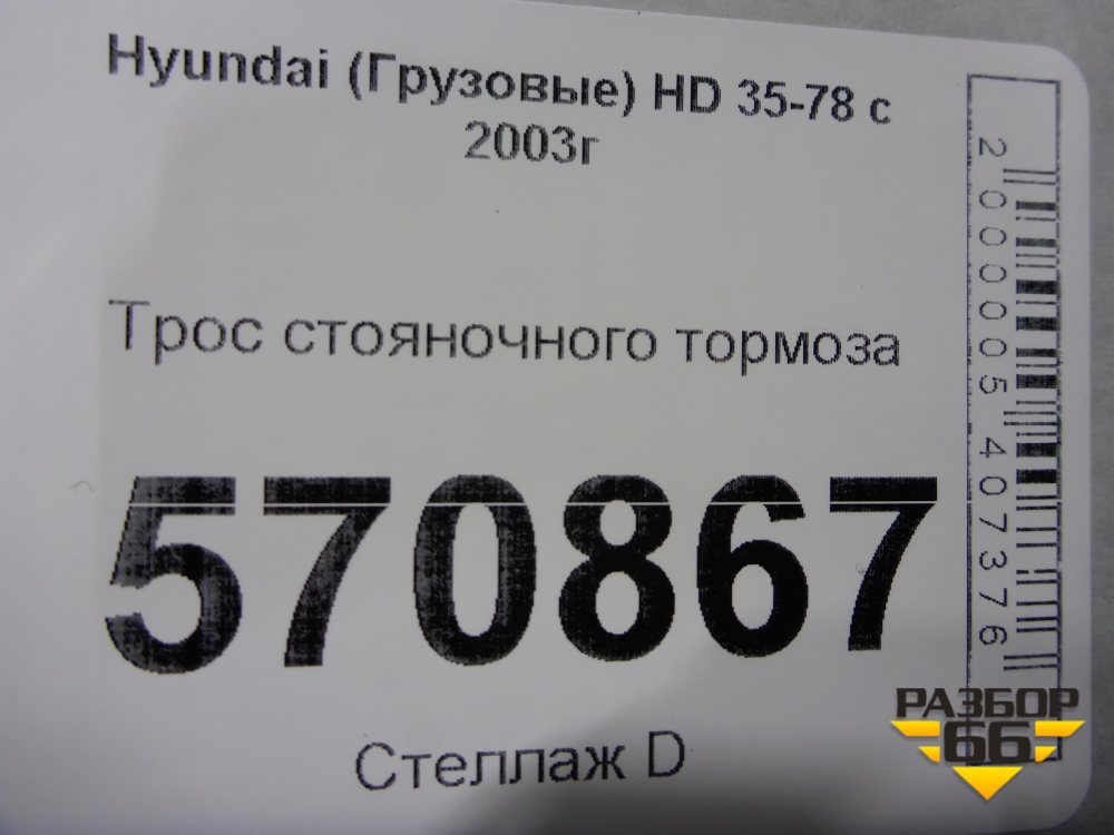 Трос стояночного тормоза для Hyundai HD 35-78 с 2003г в Екатеринбурге